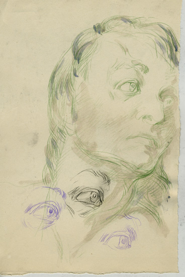 studie after Tiepolo (green and blue pencil + water color - 90's)