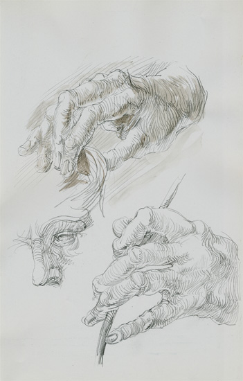 studies: 2x Durer (pencil on paper, one with water color - 00's)